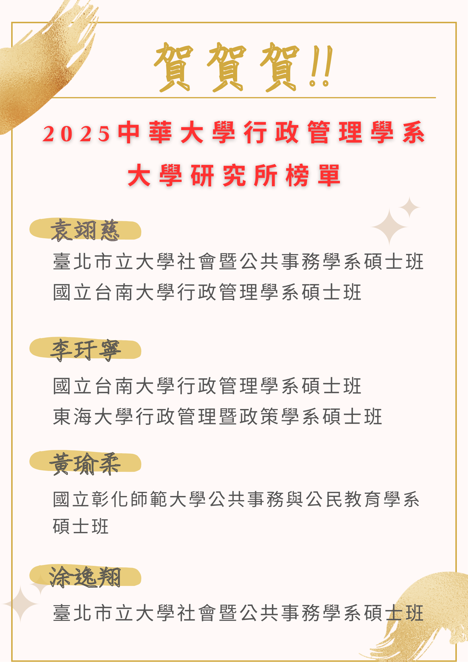 恭賀!本系大四同學考取國立研究所!表現亮眼!